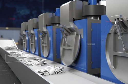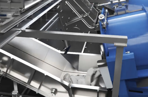 集成式自動化洗滌流水線相比單機的優勢* 自動快速裝、卸布草,大幅縮短人工輔助時間,提升工作效率
